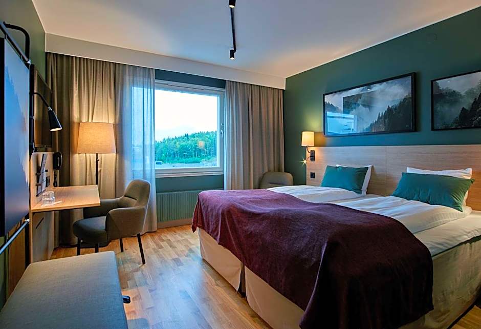 Includes a flat-screen TV, work desk and a private bathroom with a bathtub or shower.